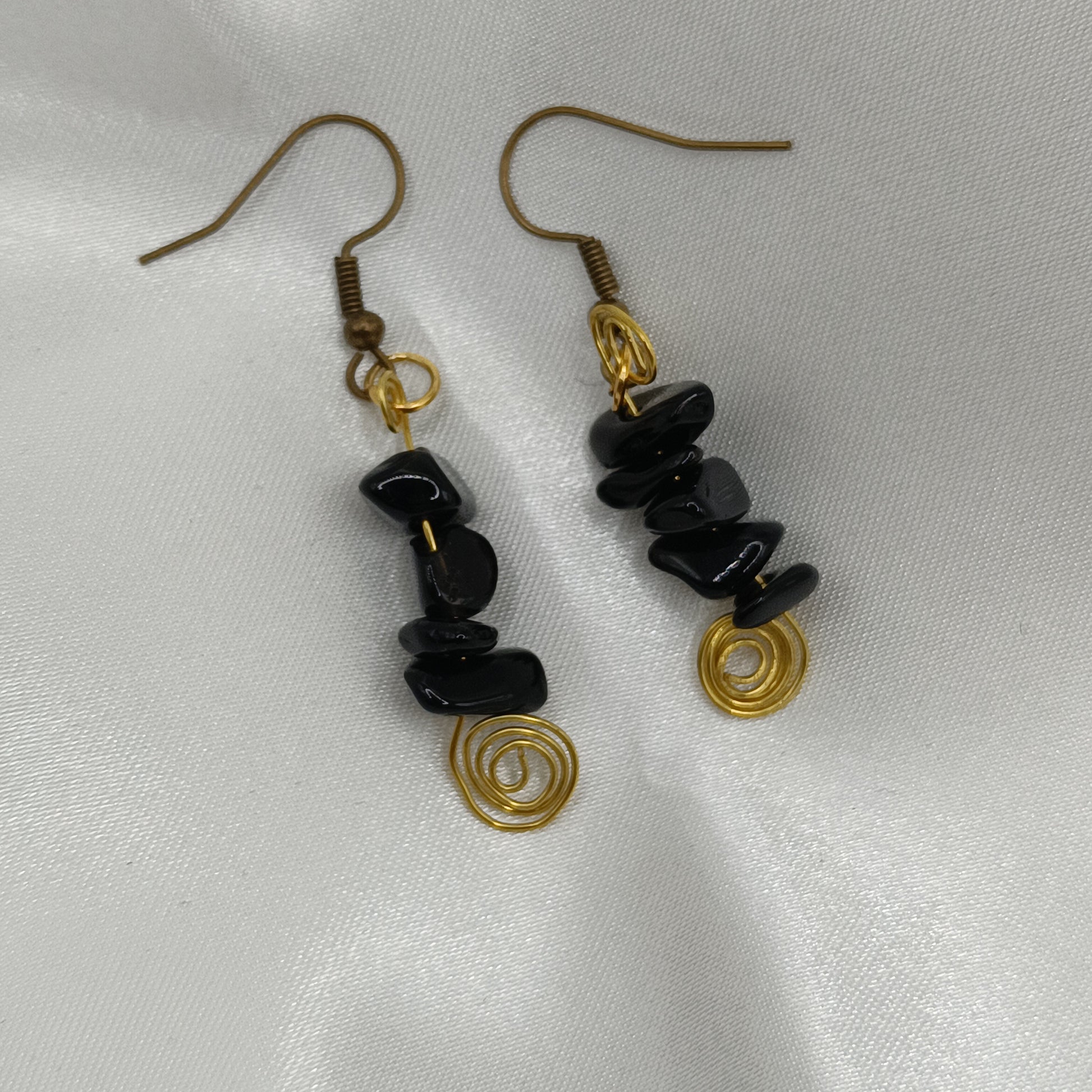 Boucle Obsius fil de fer pierre obstidienne