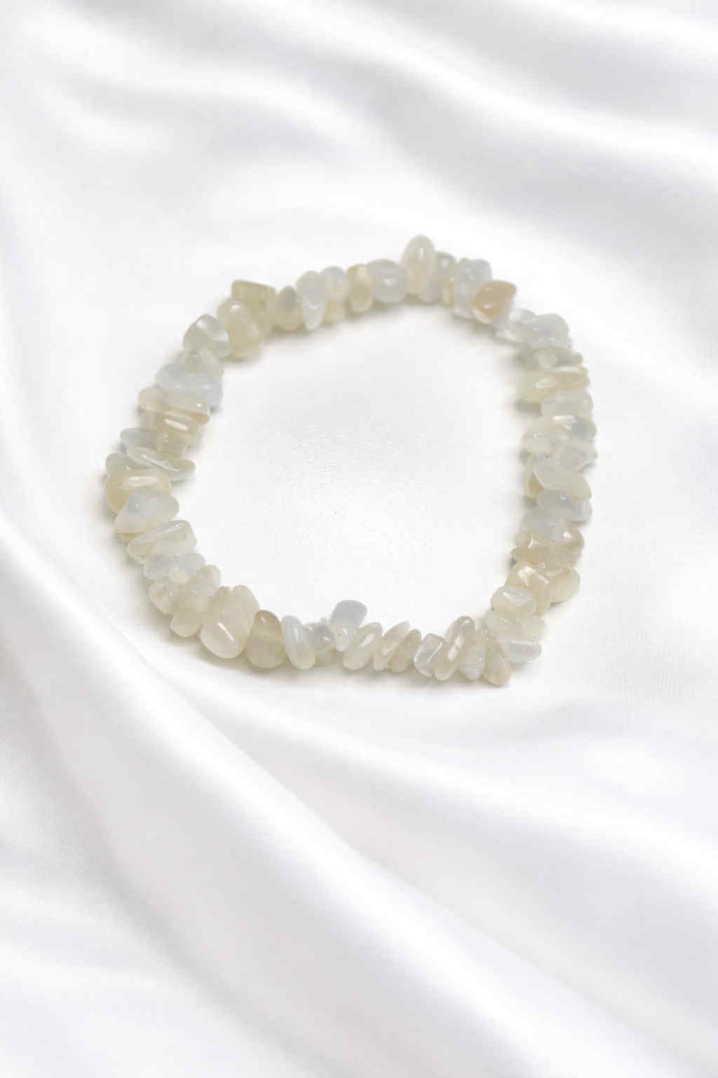 Minéral de la famille des feldspaths et appartenant au groupe des silicates, la Pierre de Lune est une variété d’orthose. Sur l’échelle de Mohs, sa dureté varie entre 6 et 6,5 et sa densité est autour de 2,6. D’une couleur translucide variant du nacré au vitreux, la Pierre de Lune peut parfois présenter des nuances de bleu ou des reflets jaunes.