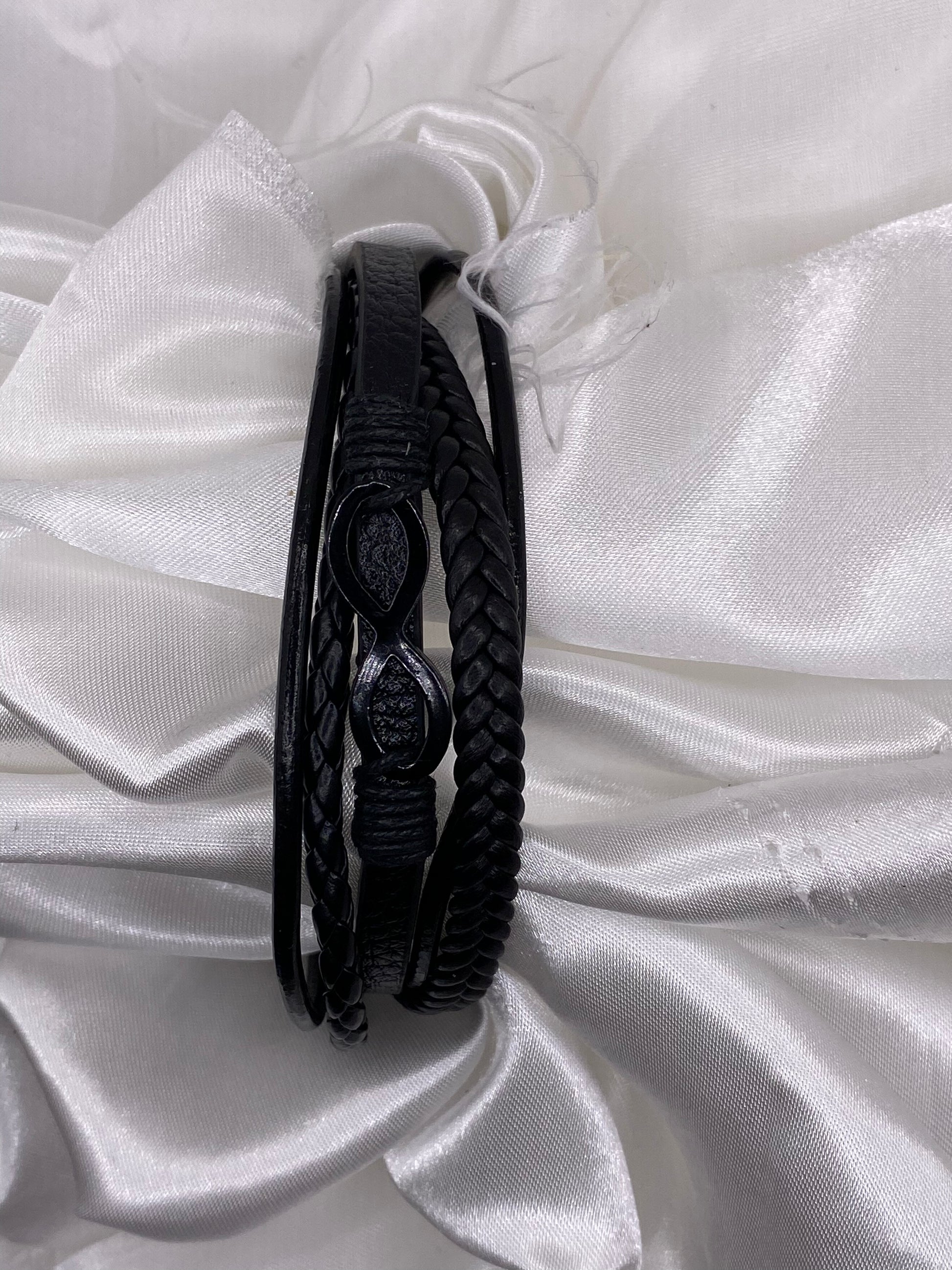 Bracelet en similicuir avec un Infini noir en acier inoxydable