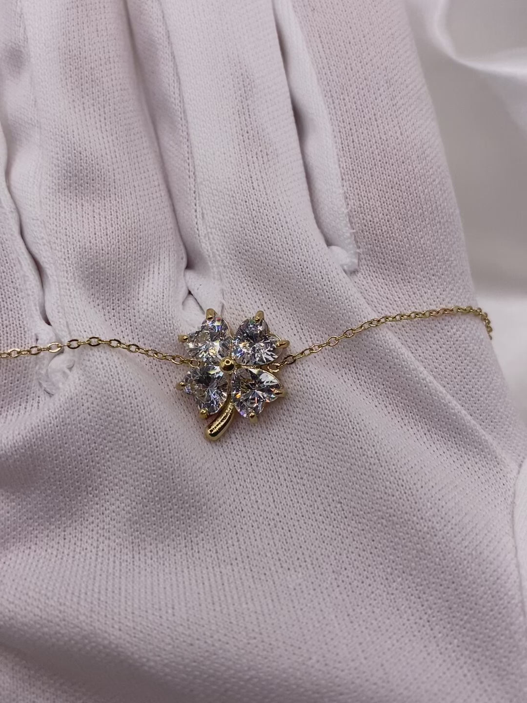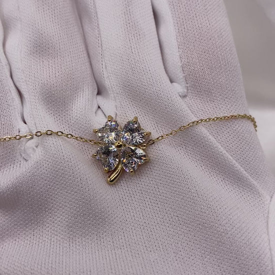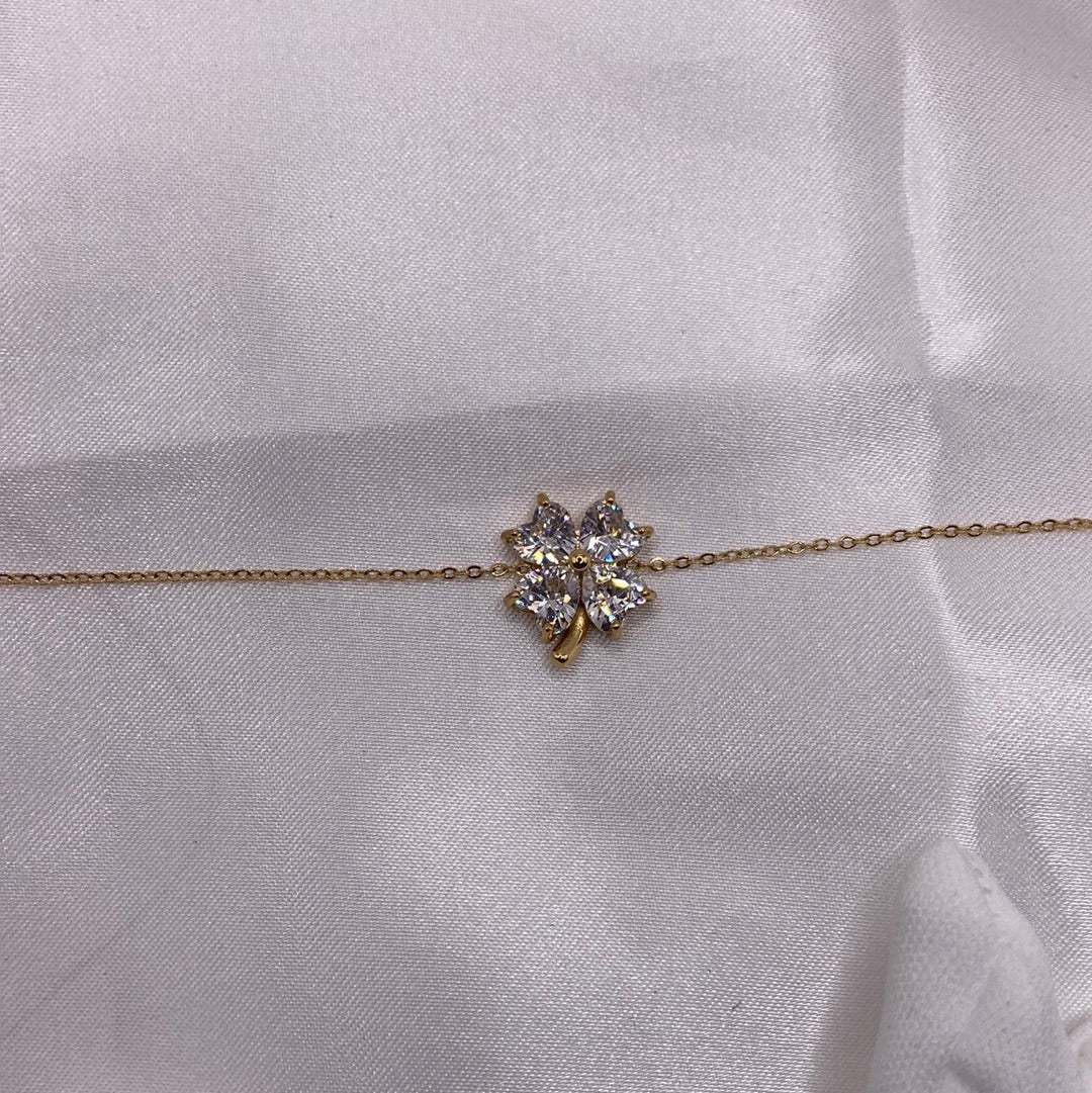 Découvrez ce magnifique bracelet avec son trèfle à quatre feuilles en strasse, qui brille de 1000 feux de la couleur dorée en acier inoxydable matériaux qui tient très bien dans le temps