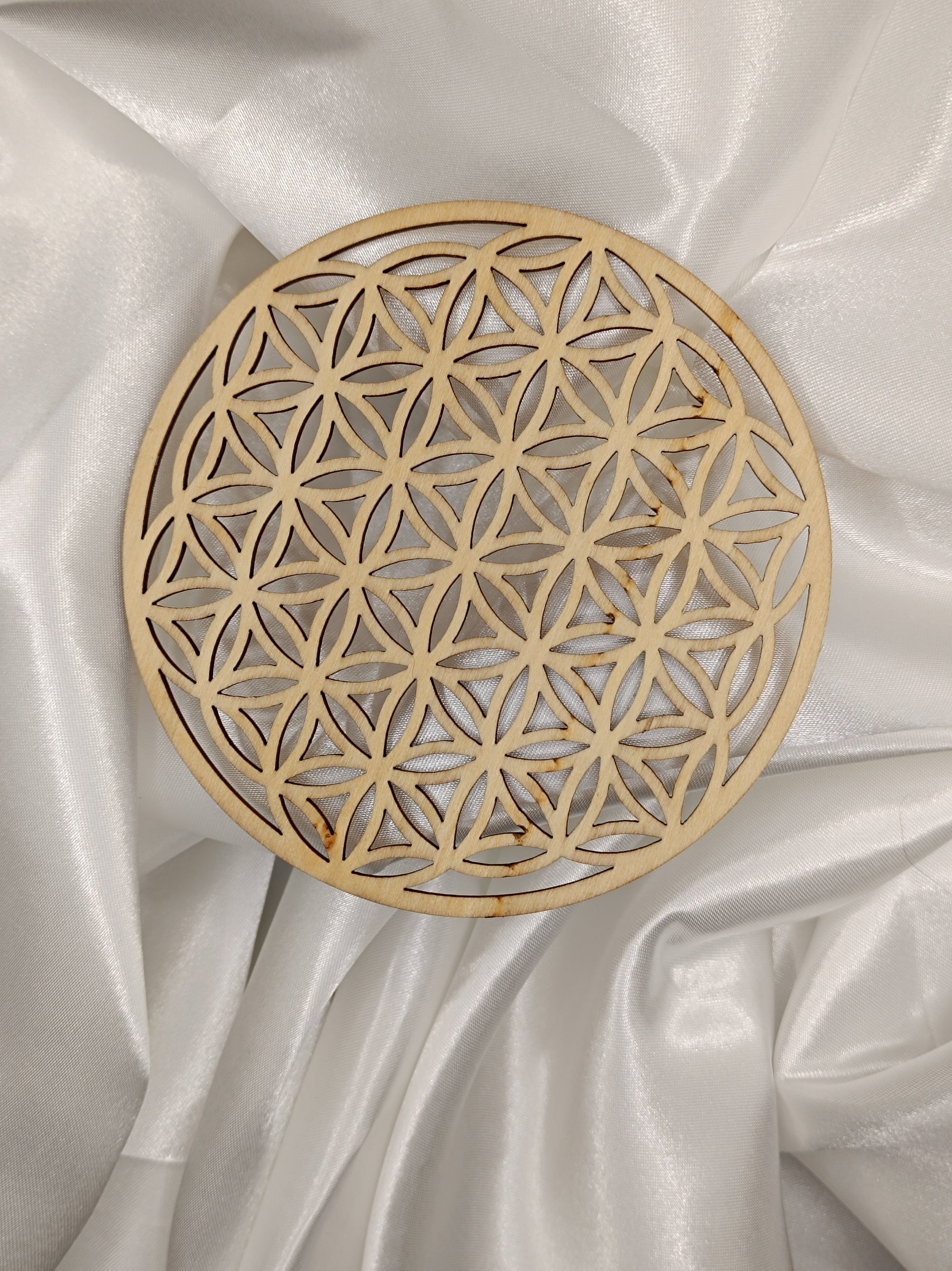 Plaque fleur de vie sculptée bois