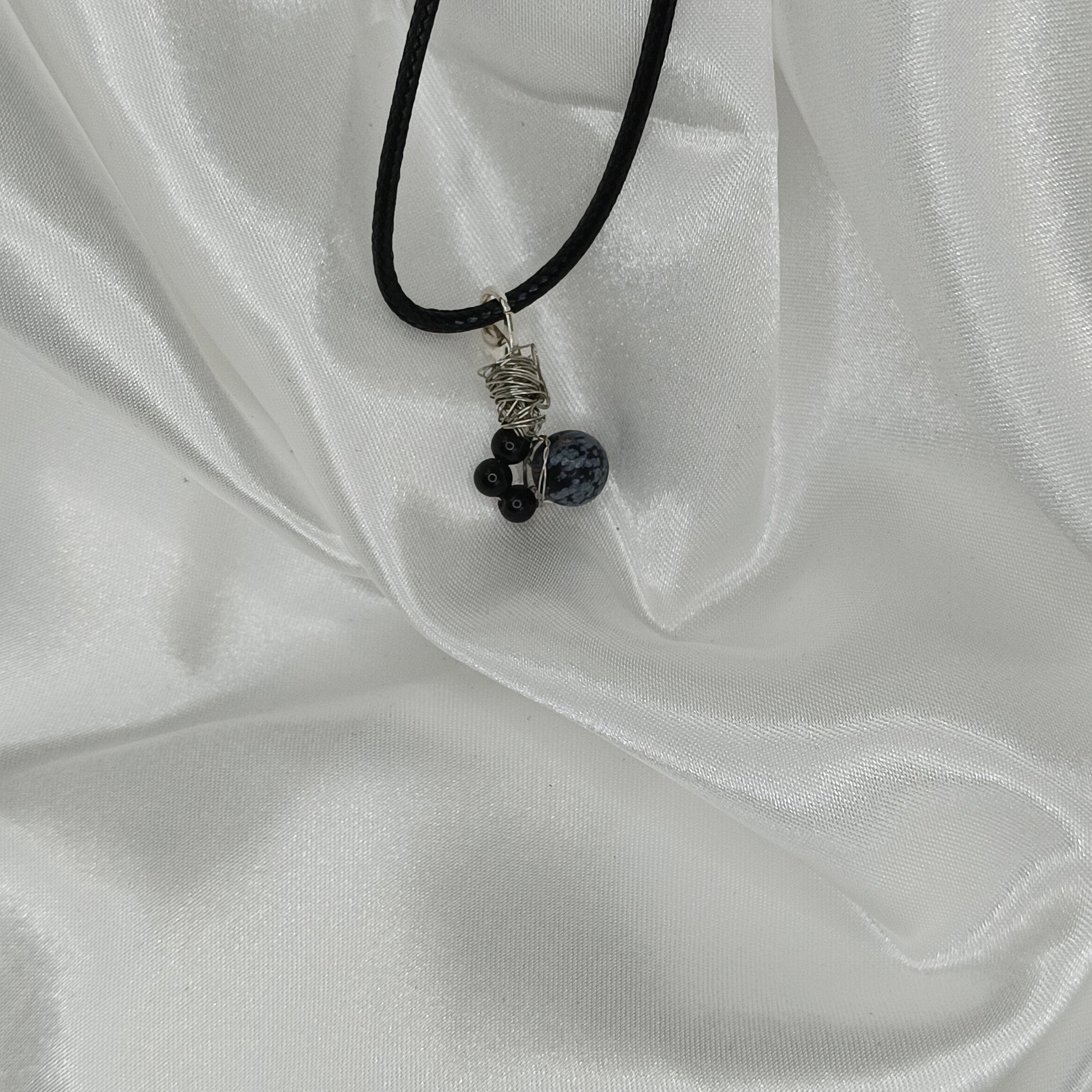 Collier en cuire 44 cm artisanal pierre obstidienne